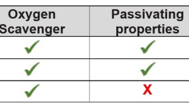 Fig. 3 shows the properties of commonly available Oxygen Scavengers. Hydrazine and DEHA are the most widely used because of the combined Oxygen Scavenging and Passivating properties. Major boiler manufacturers and Class organisations strongly recommend such technologies because of this dual activity.